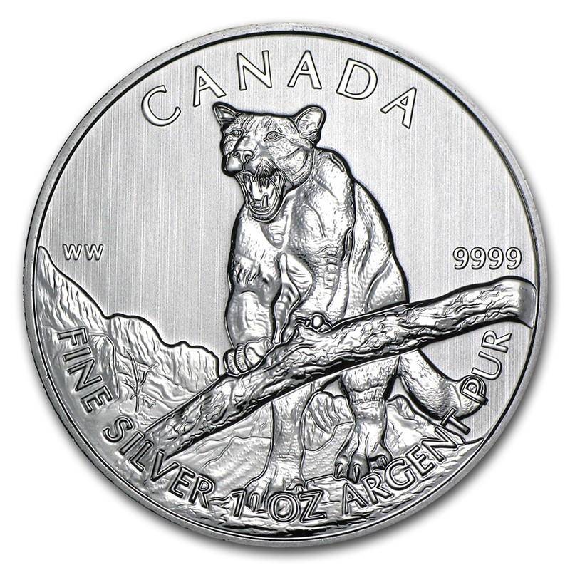 Esta moneda de plata en lingotes de la Royal Canadian Mint está dedicada a uno de los depredadores más poderosos y ágiles de Norteamérica. El reverso representa un puma capturado en un salto dinámico, destacando su fuerza, velocidad y agilidad. El anverso muestra el tradicional retrato de la reina Isabel II.