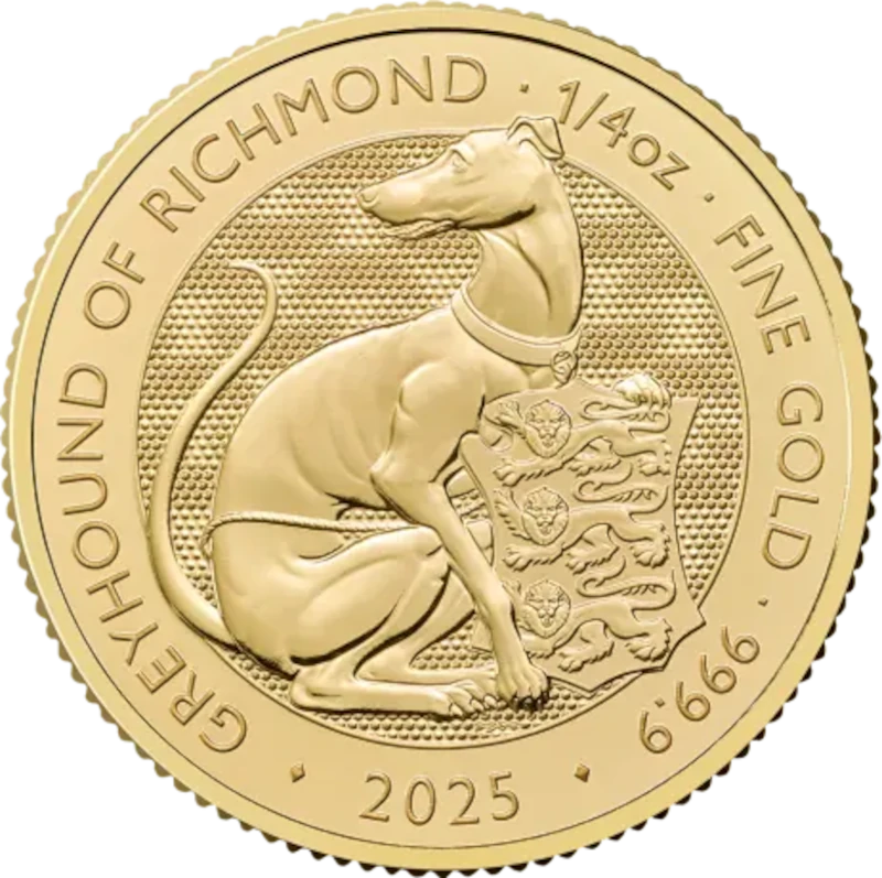Reino Unido: moneda de oro Galgo de Richmond 2025 1/4 oz