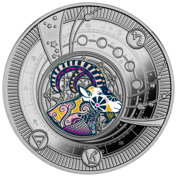 Esta exquisita moneda de plata de la serie "Signos del Zodíaco" está dedicada a Capricornio, signo de tierra que simboliza la firmeza, la responsabilidad y la fuerza interior. El reverso muestra a Capricornio decorado con delicados ornamentos y motivos sobre un fondo de cielo estrellado y símbolos zodiacales. La moneda está acuñada en calidad Proof con impresionantes detalles y colores brillantes. Un elegante anillo colgante permite lucirla como joya, resaltando la individualidad del propietario. La moneda se entrega en un estuche con certificado de autenticidad y está limitada a sólo 599 piezas en todo el mundo.