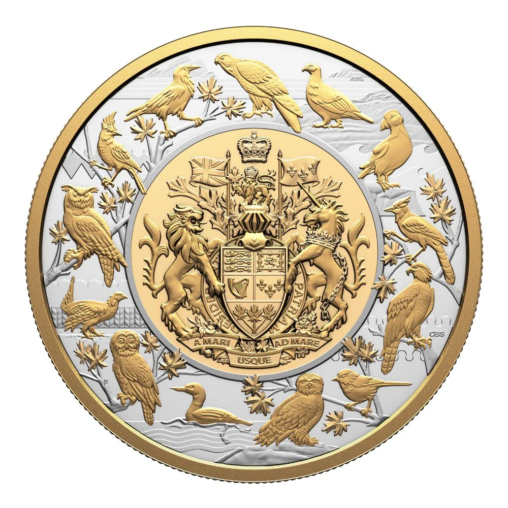 Canadá: сollectible silver coin Paisaje Heráldico. Aves de Canadá 2024, Proof, dorada, 157,6 g plata pura (0,9999)