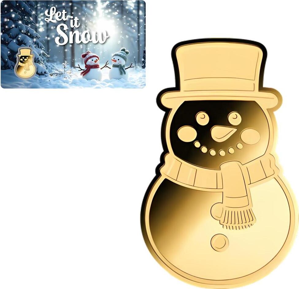 Chad: moneda de colección de oro Let it Snow. Muñeco de nieve 0,031 g de oro puro (0,999)