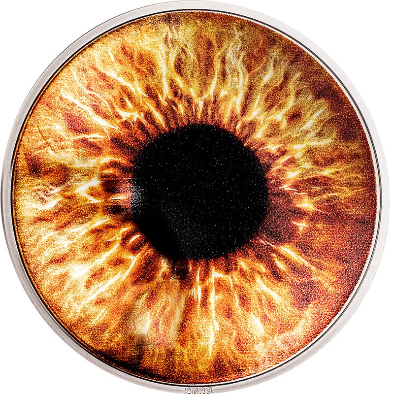 Esta elegante moneda de plata de 1 onza cautiva por su atmósfera misteriosa y su sutil referencia a la magia de los ojos color avellana. El expresivo iris, de un cálido tono marrón avellana, se muestra en primer plano, recordando a una llama viva y atrayendo al espectador con su notable profundidad de color. Acuñada en calidad Proof, la moneda está realzada con un llamativo color que resalta el carácter artístico del diseño. Se entrega en un estuche de marca con certificado de autenticidad. La tirada limitada es de 1.500 piezas en todo el mundo.