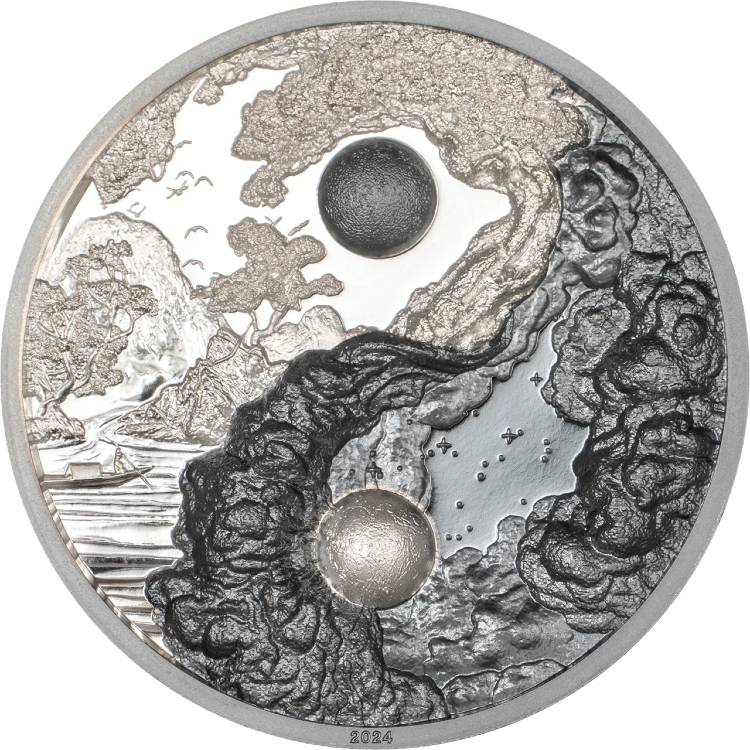 Moneda de plata de Palaos "Yin y Yang" (negra proof) 2024, 31,1 g. plata pura (0.9999 proof)