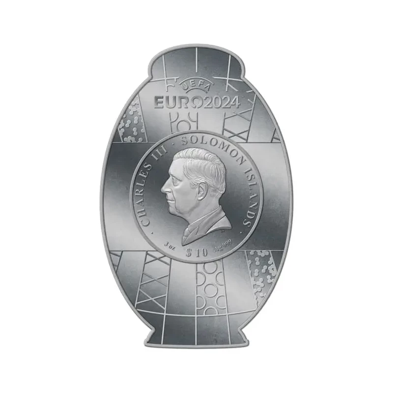 Moneda de plata Islas Salomón "European Football Championship Cup 2024" 2024, 93,3 g. plata pura (0.999 proof).