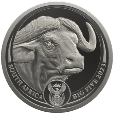 El quinto y último lanzamiento de la serie Big Five II de la Casa de la Moneda de Sudáfrica rinde homenaje al búfalo africano, uno de los miembros emblemáticos de la fauna africana. Acuñada en calidad Proof con una tirada estrictamente limitada de sólo 500 piezas en todo el mundo, la moneda tiene una denominación de 20 Rand. El anverso muestra un poderoso retrato en primer plano de un búfalo junto a las inscripciones "SOUTH AFRICA", "BIG FIVE 2023" y el escudo nacional. El reverso presenta dos mitades reflejadas de una cabeza de búfalo; cuando dos monedas se colocan juntas forman un retrato completo, y varias monedas crean la impresión visual de una manada entera. Esta moneda Proof de platino, que mide 32,69 mm de diámetro y se presenta en una caja de madera original con un Certificado de Autenticidad numerado, combina rareza, diseño innovador y artesanía excepcional.