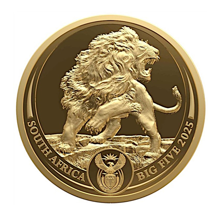 Sudáfrica: moneda de colección de oro Big Five III. León 2025, Proof 7,78 g oro puro (0,9999)