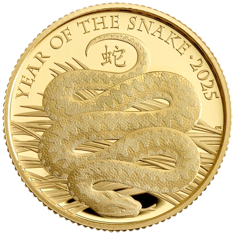 Moneda de Oro del Reino Unido Año de la Serpiente 2025 Proof 1/4 oz