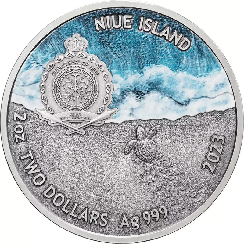 Moneda de plata de Niue "Tortuga boba" (proof, color) 2022, 31,1 g, plata pura (0.999 proof)