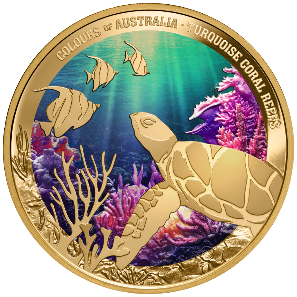 Moneda de oro Niue "Arrecifes de Coral Turquesa" (proof) 2024g. 31,1 g. de oro puro (0,9999 proof).