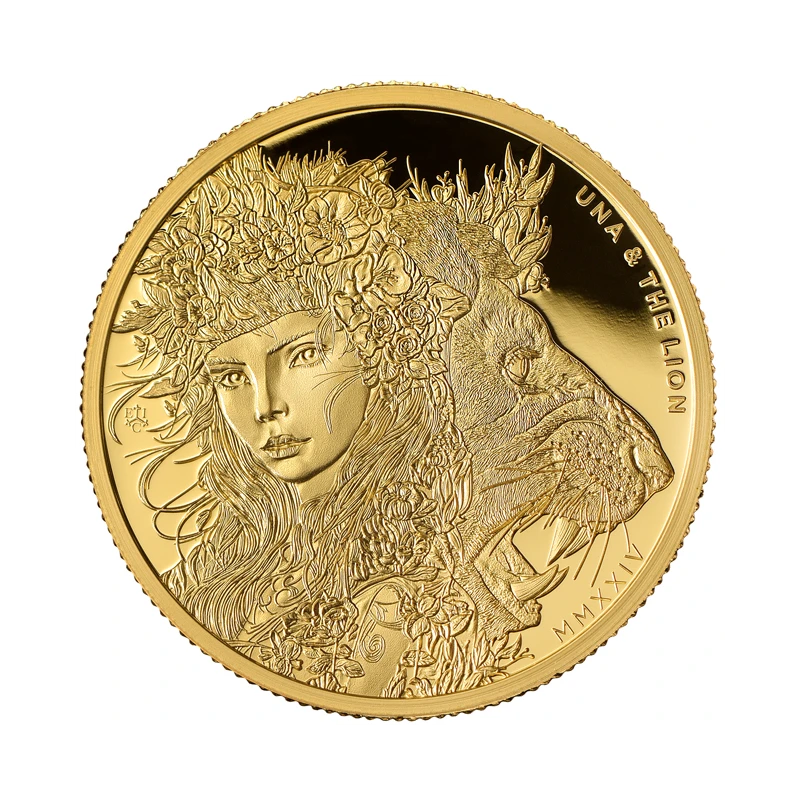 Moneda de oro de Santa Elena "Una y el León" (proof) 2024, 31,1 g de oro puro (0,9999 proof).